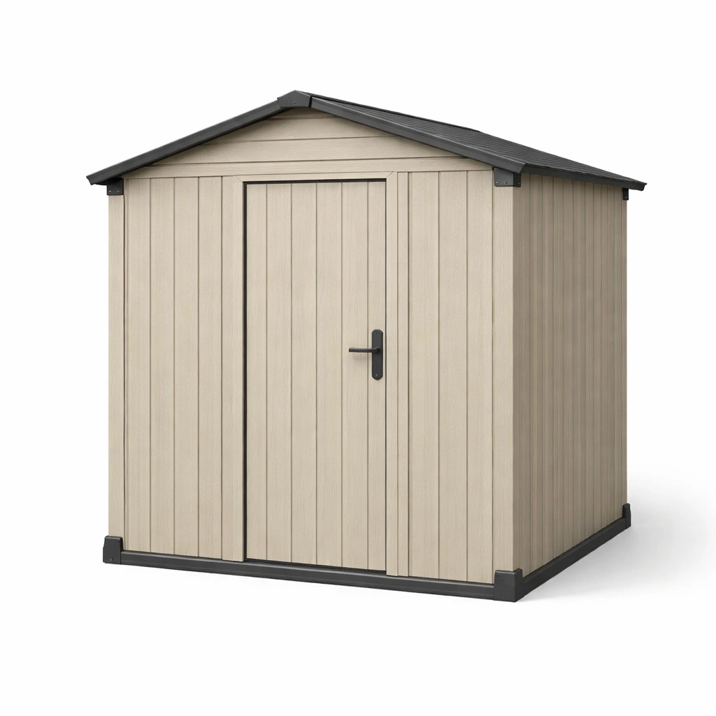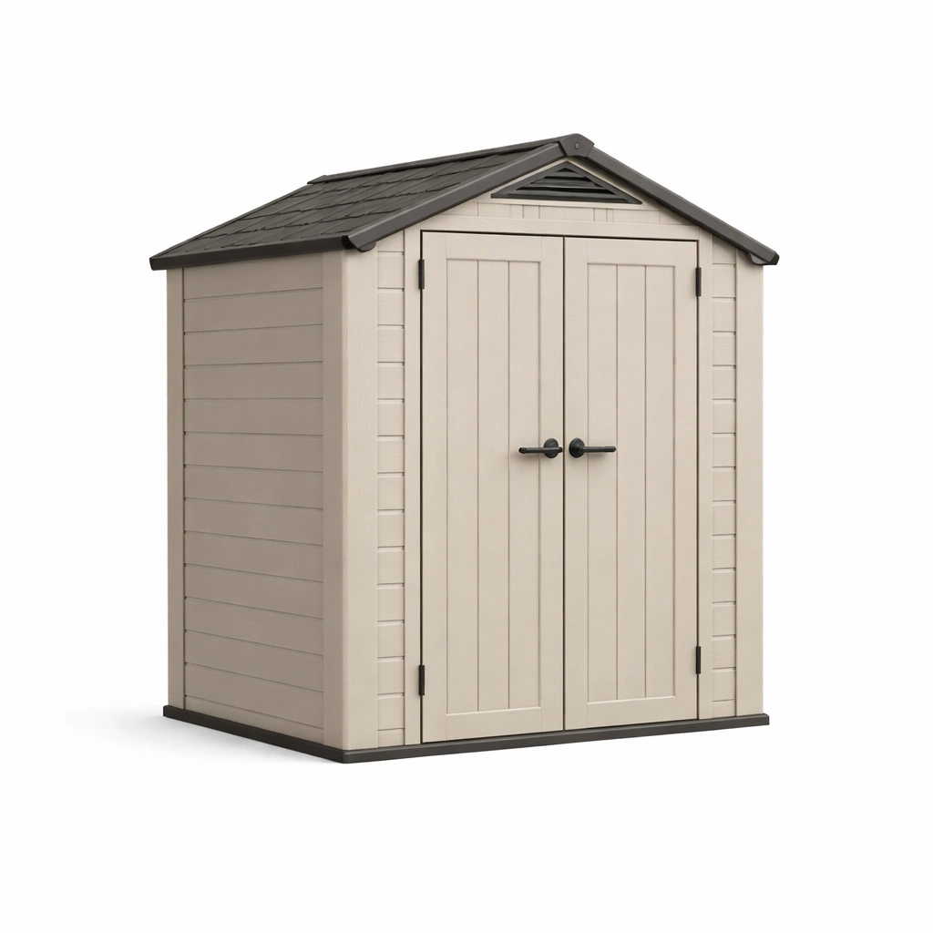 Cobertizo de jardín de resina beige con techo a dos aguas