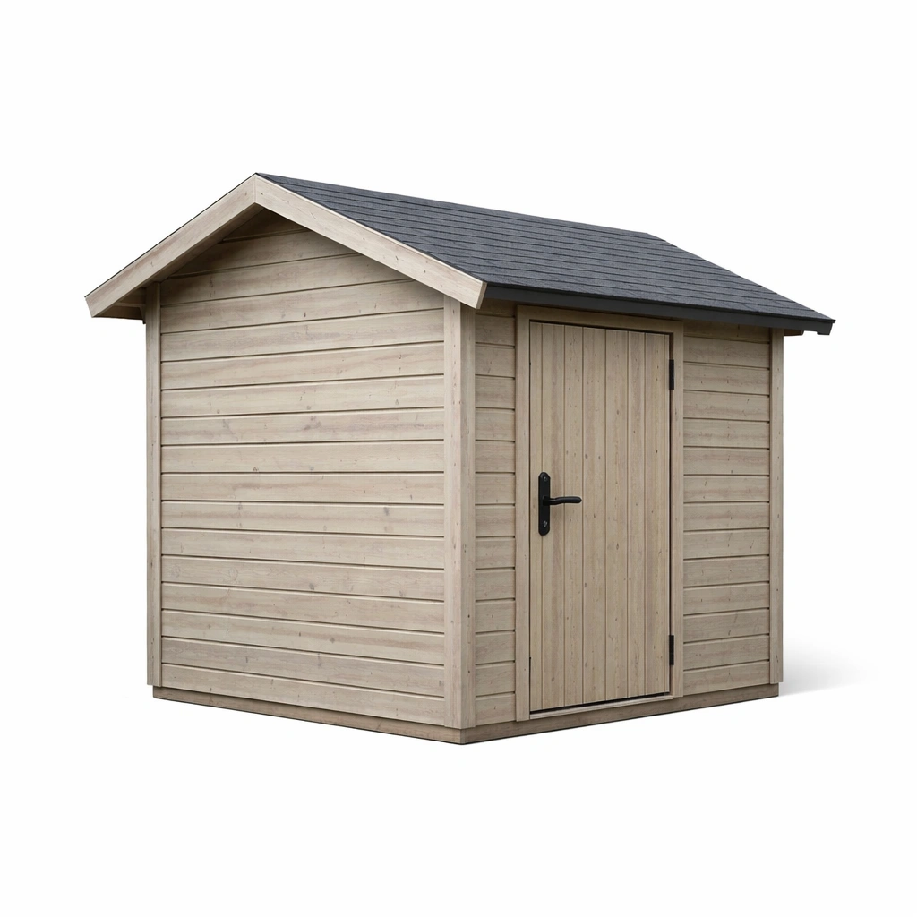 Cobertizo de jardín de pino con techo de tejas asfálticas