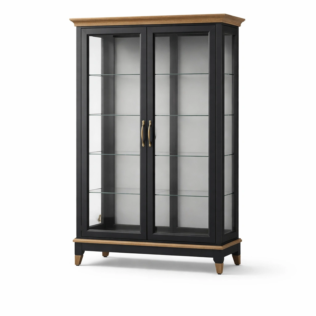 Vitrina de vidrio templado negro y madera 180x90x40 cm
